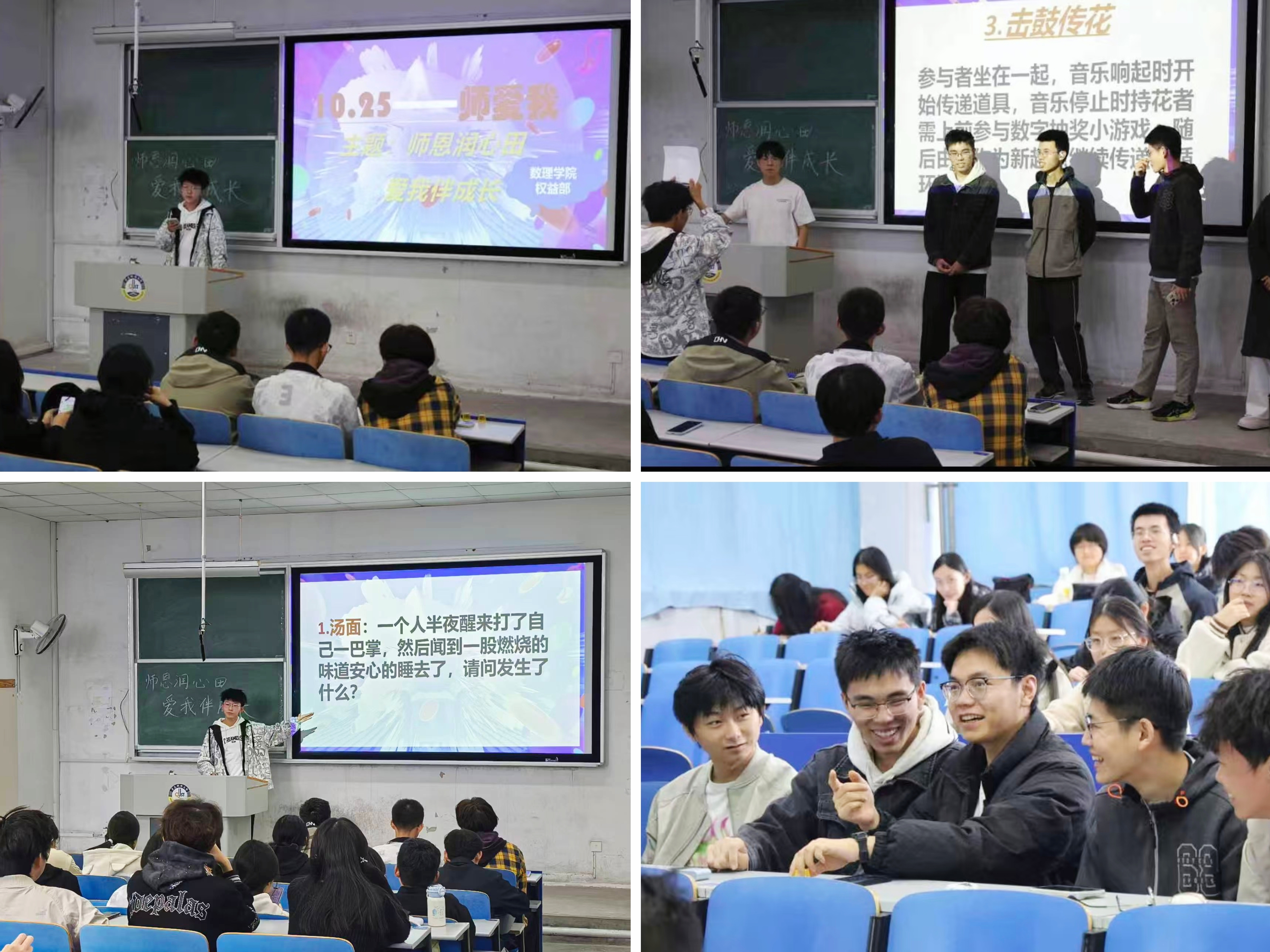举办“10·25 师爱我”主题系列活动。活动通过趣味游戏、主题征文、师生合影等多种形式,为师生搭建互动平台,传递“尊师爱生”的温情。