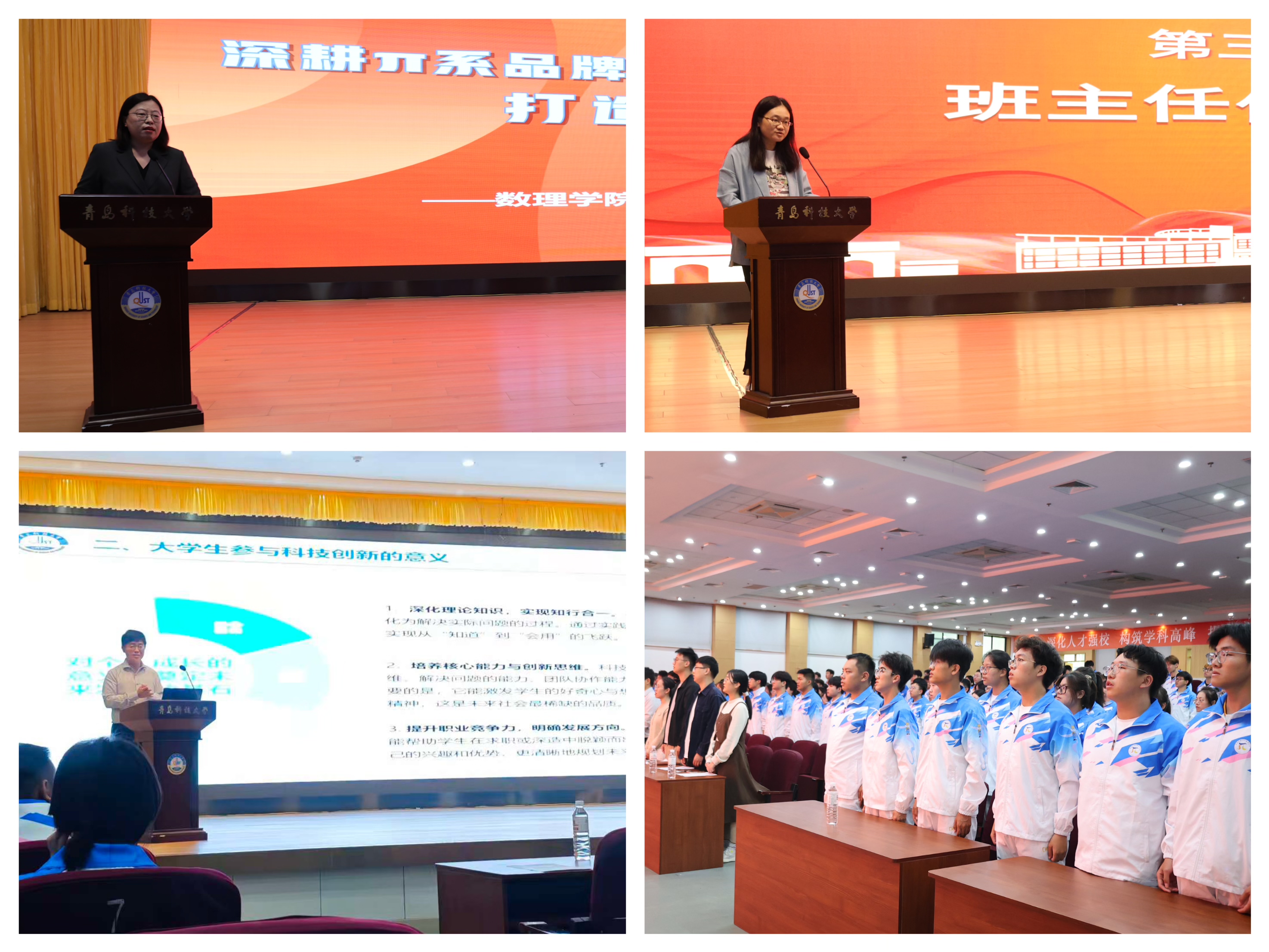李雯雯系统回顾了过去一年π型班级在思想引领、科研学习、社会实践等方面取得的丰硕成果,彰显了学院特色育人模式的显著成效。数学系主任张瑞坤、物理系主任高鹏分别为格物致知班、思享悦读班、雷锋团支部、科研先锋班π型班级授旗,进一步打造学院特色育人品牌