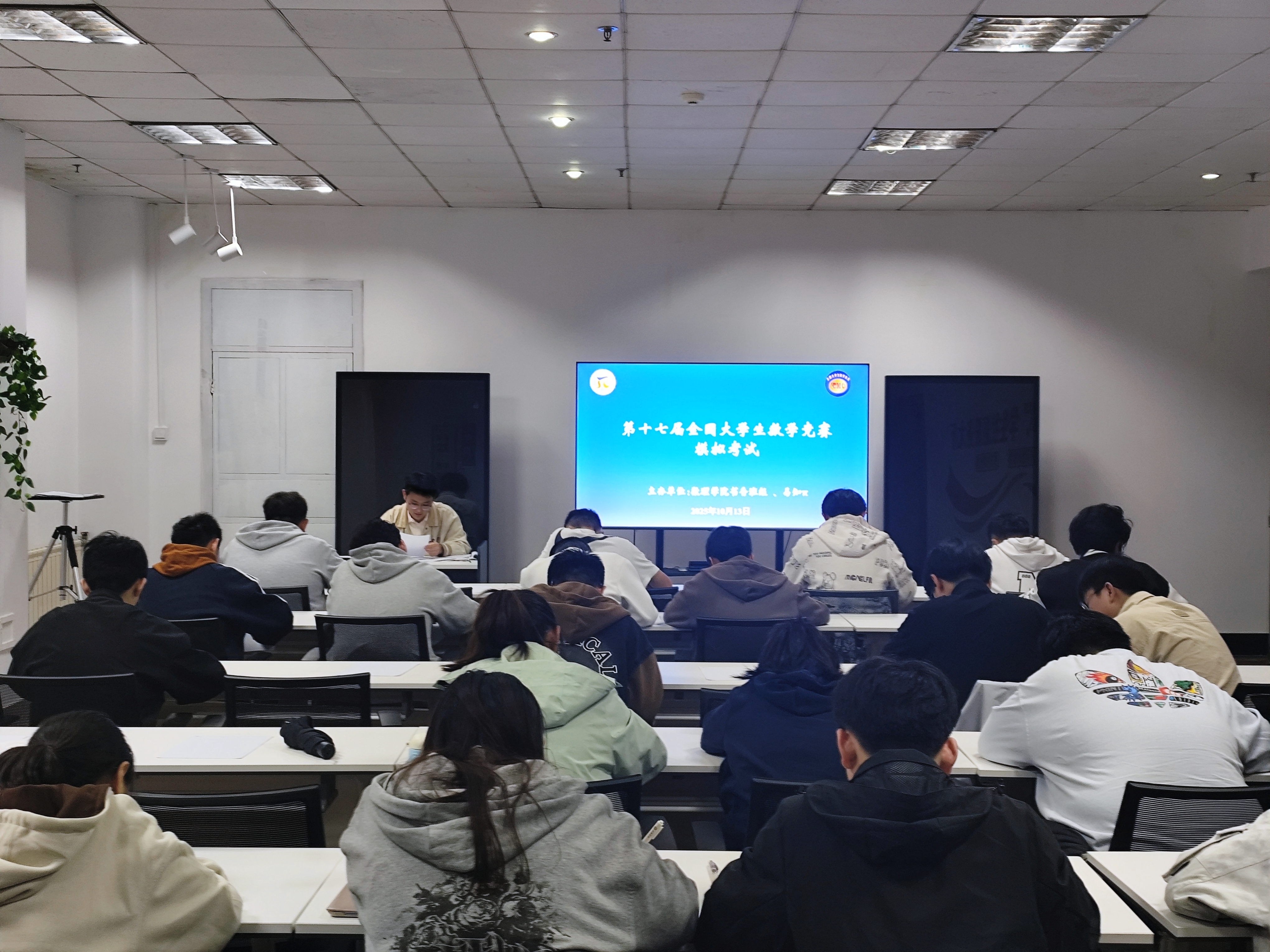 书香班级联合易知π数学共同体于学校一站式社区举办第十七届全国大学生数学竞赛模拟考试。本次活动通过全真模拟竞赛环境,帮助学生熟悉考试节奏、明确备考方向,为冲刺全国赛事奠定坚实基础。